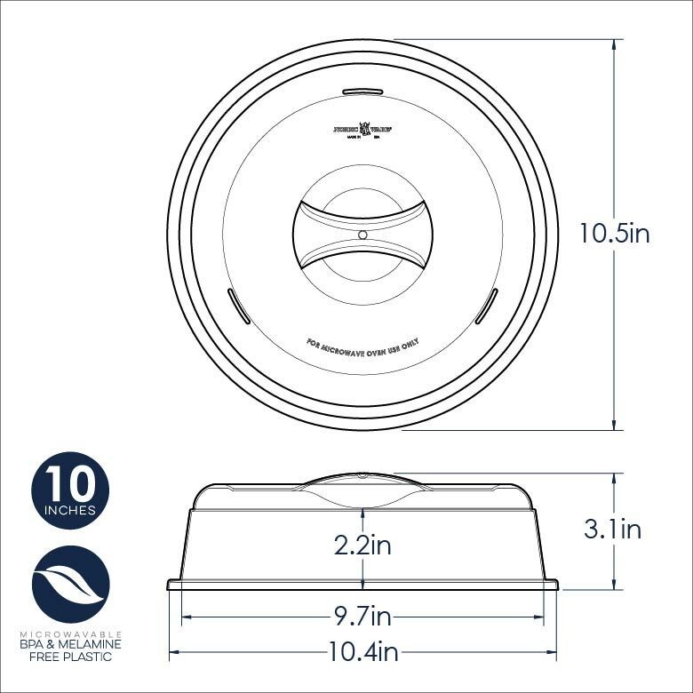 Fits standard dinner plates and the Nordic Ware® 2-sided Bacon-Meat Grill. Allows you to view food without spatters in the microwave. Proudly made in the USA by Nordic Ware®. Top rack dishwasher safe. Made in the USA.